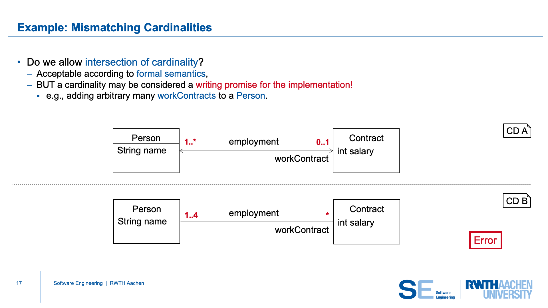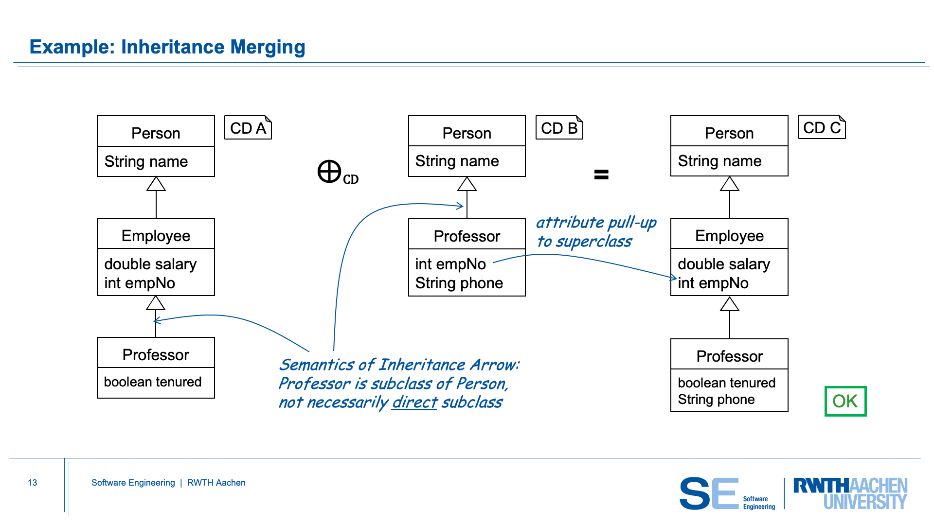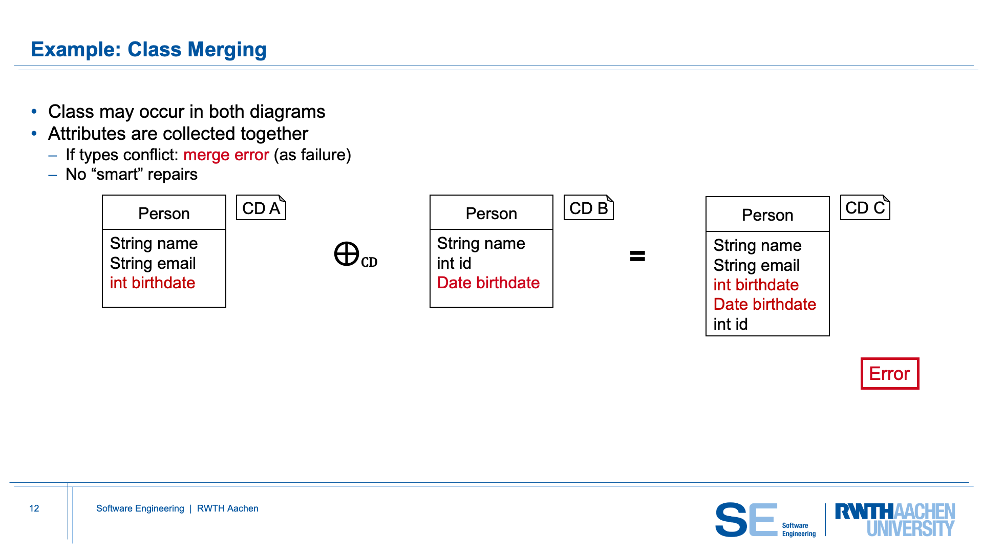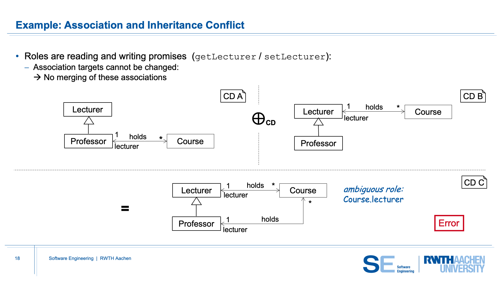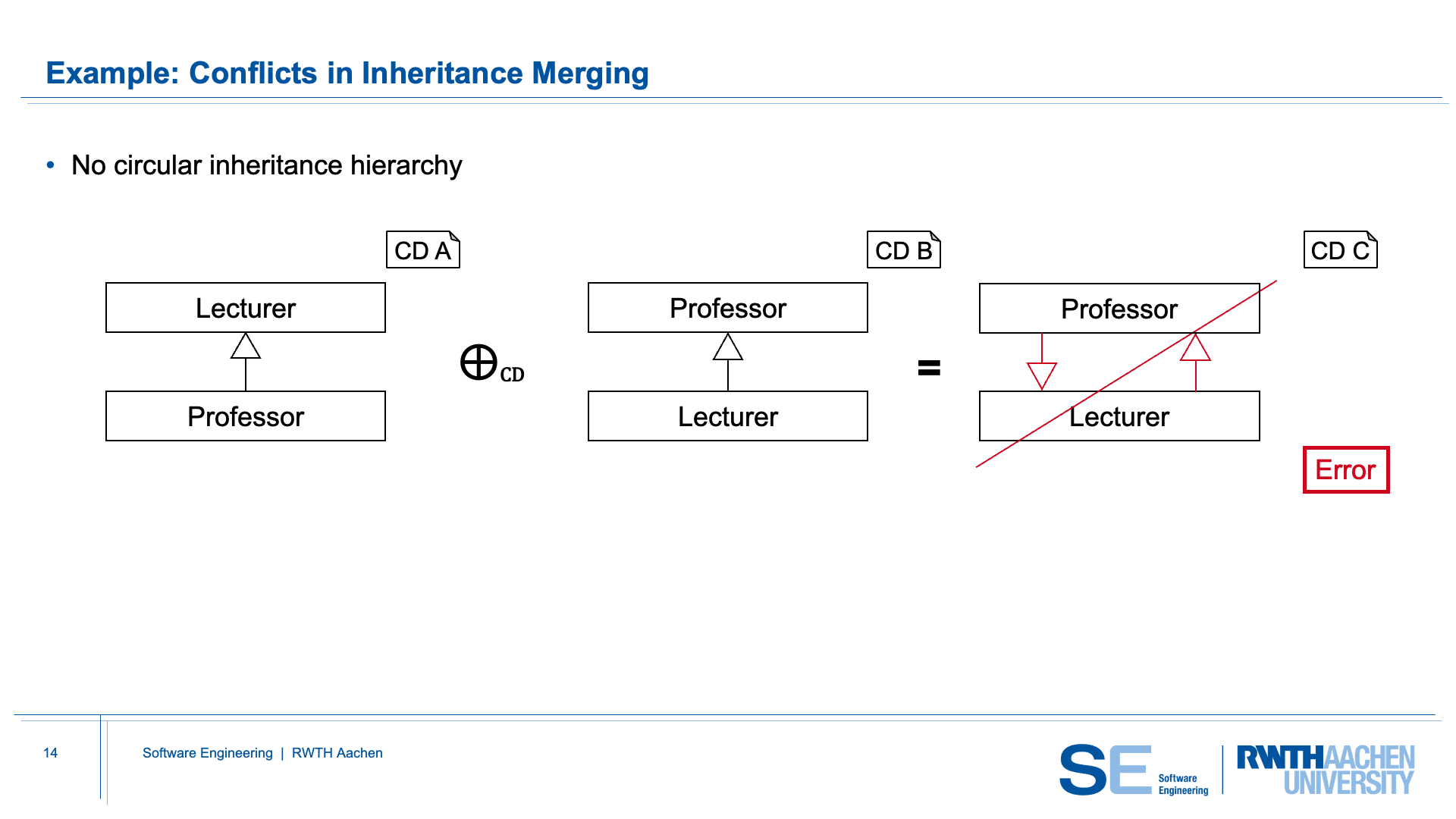 CD-Merge therefore rejects this situation, because no consistent merged hierarchy can be created that satisfies both input models.