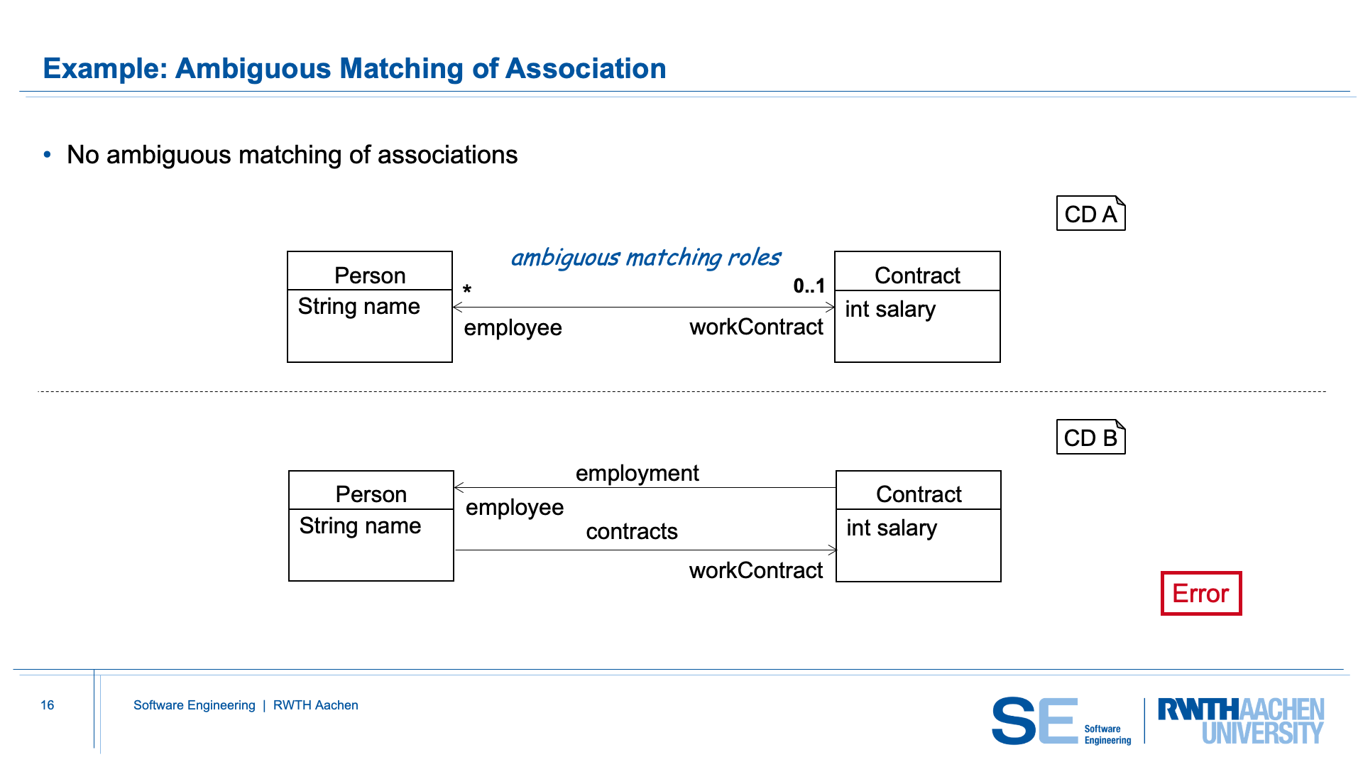 association is unambiguous within CD A. CD B contains two different