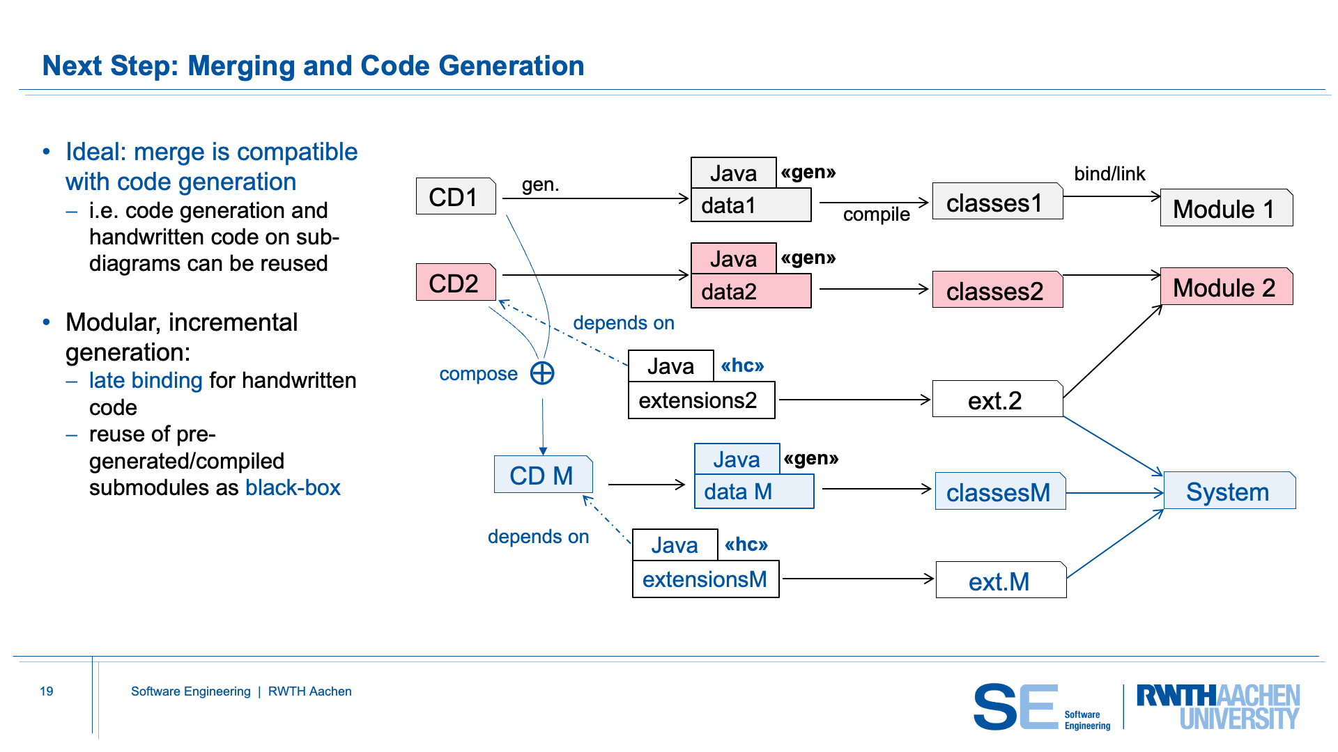 CD-Merge integrates with a modular code-generation workflow. When several class