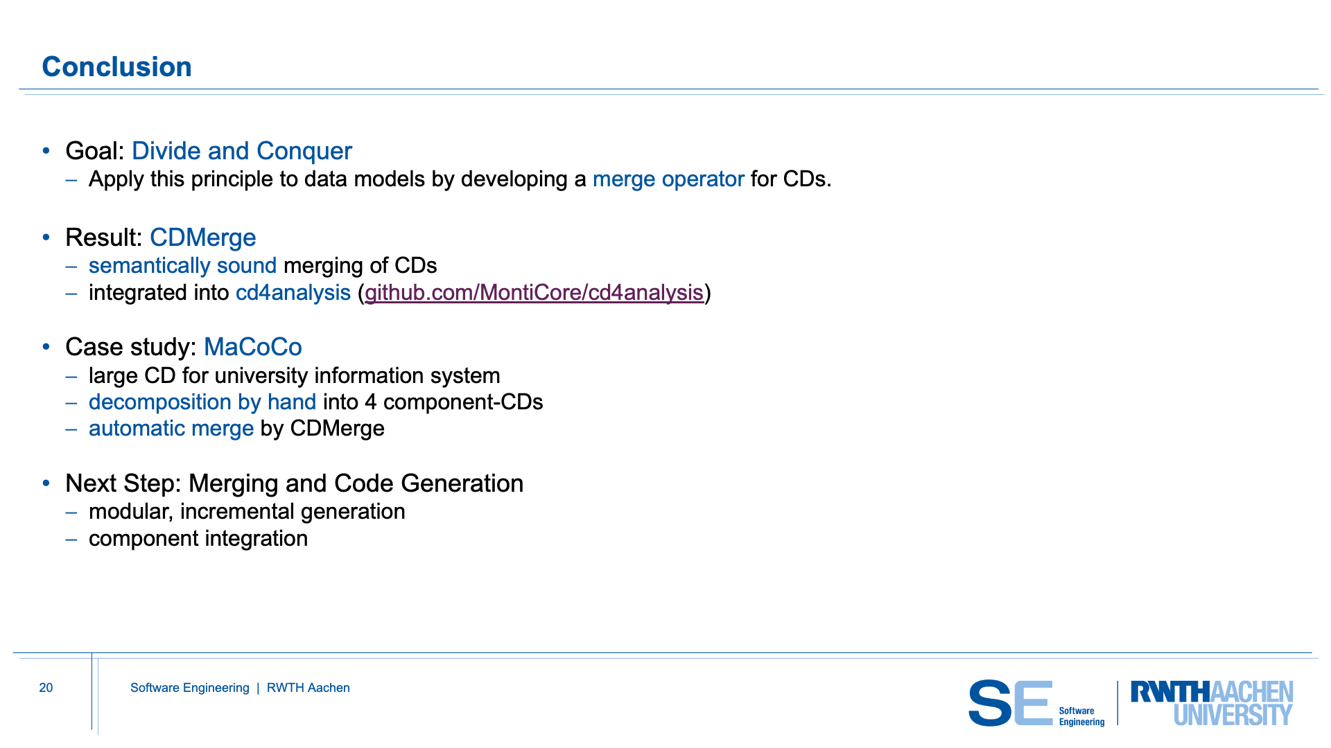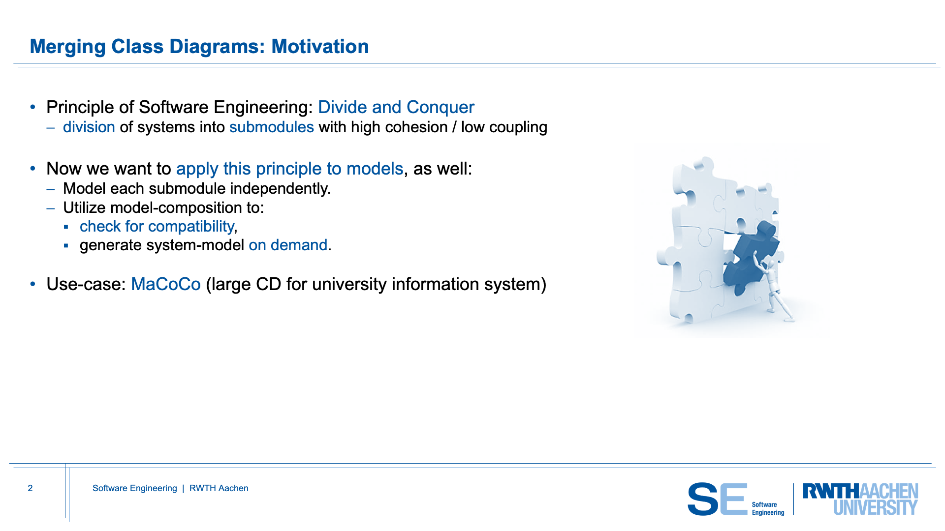 CDMerge brings the divide-and-conquer principle to class diagram modeling.